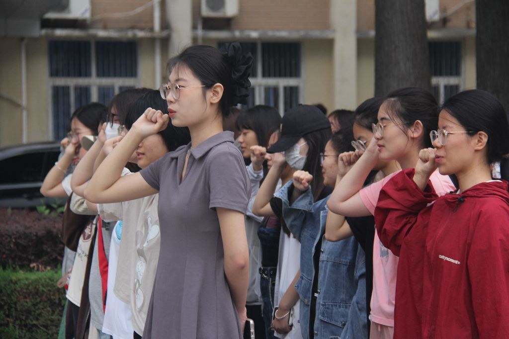 迎着朝阳,仪式开始,国旗护卫队迈着坚定有力、整齐划一的步伐走向旗台。伴随着神圣庄严的《义勇军进行曲》,五星红旗缓缓升起,全体师生面向国旗行注目礼。升旗礼毕,在鲜红的国旗下,我们团员代表陈梦莹结合自己的学习成长经历,号召同学们作为新时代青年要勤于学习、敏于求知、艰苦奋斗、锐意进取。随后,付亚男对勉励同学们要以饱满的热情和坚定的信念,勇做“复兴栋梁”“强国先锋”,在实践成长中,不断加强学习,磨砺技能。接着,由学生代表万彬彬同学带领同学们进行宣誓,激情高昂的宣誓声响彻校园。最后,由全体师生齐唱歌曲《歌唱祖国》,阵阵歌声展现着师生对祖国的热爱和勇担大任的信心。